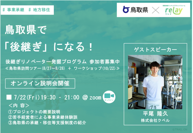 ・「”とっとり×後継ぎリノベータ―”プロジェクト」:https://relay.town/local/tottori/program/