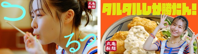 この度公開されるWEBCM「タル鶏天ぶっかけ タルトリテンダンス」篇では、莉子さんの「タルトリテーン」という掛け声から始まり、丸亀製麺ののれんから笑顔の莉子さんが登場します。今回のオリジナルソングでもある「タルトリテン!タルトリテン!」という、ポップでリズミカルな音楽に合わせて『タル鶏天ぶっかけうどん』が登場。「#チームタルトリアン」の一員である莉子さんは、「莉子、着・丼!!!(ちゃく・どん!!!)」と、できたてのおいしそうな『タル鶏天ぶっかけうどん』とともに自撮り。