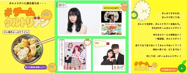今後、『タル鶏天ぶっかけうどん』が大好きな彼ら彼女らだからこその、“こだわりの食べ方“や“わたしは『タル鶏天ぶっかけうどん』のここが好き!”をそれぞれのSNSで発信。世の中に溢れる「タルトリアン」とともに今年の『タル鶏天ぶっかけうどん』を盛り上げていきます。