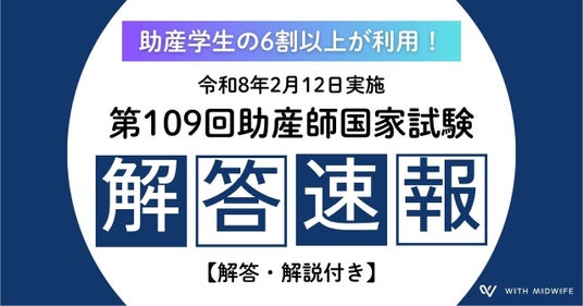 株式会社With Midwife(本社:大阪市、以下With Midwife)は、第109回助産師国家試験(2026年2月12日実施)において公開した解答速報について、厚生労働省の正式解答と照合した結果、正答率97.2%であったことをお知らせいたします。当社は2023年より解答速報を継続して公開しており、本年で4年目となります。