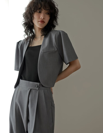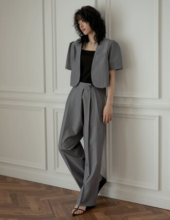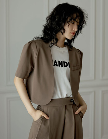 [2点セット][低身長/高身長サイズ有]半袖パフジャケット×スラックスセットアップ