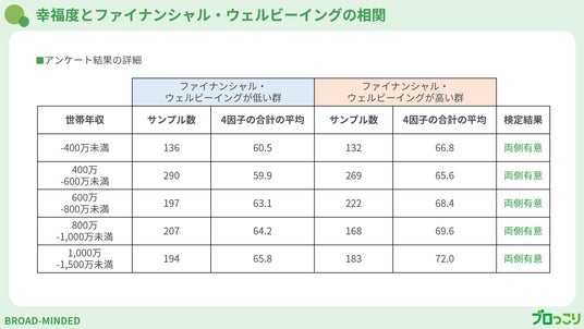 幸福度にとってFWBが高いことは“年収1,000万円分”を埋めるほどの効果がある