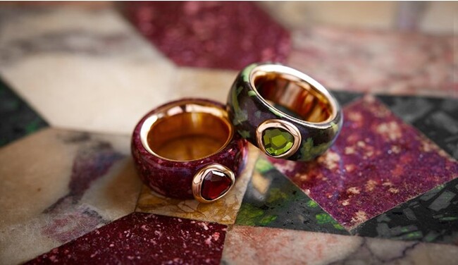 時代を超えてシンプルを極めた「イコニカ」リングは、ポメラートがベネチアの豊かな芸術的伝統にオマージュを捧げるための完璧なステージとなります。ローズゴールドにレッドポルフィリーとガーネットをあしらったリングと、ローズゴールドにグリーンポルフィリーとグリーントルマリンをあしらったものの2種類が揃います。ミラノに息づくポメラートの金細工技術の伝統に根差したクラシックなデザインに融合されたストーンのイレギュラーなカッティングやベゼルなど、古代の芸術的デザインを完璧に捉えたリングが、リミテッドエディションの「イコニカ ベネチア」です。