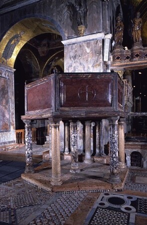 説教壇(the Epistle Ambo)は、ビザンティン帝国の伝統では皇帝のために使用される石材である壮麗な赤いポルフィリーで作られています。説教壇は主催壇に次いで重要なもので、1797年までドージェの礼拝堂だった建物内でも特に重要なものです。ドージェはこの説教壇からベネチア人に語りかけていました。