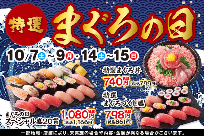 持ち帰り寿し店の「小僧寿し」「茶月」を運営する株式会社小僧寿しは、持ち帰り寿し店「小僧寿し」にて、10月7日(土)~9日(月・祝)・14日(土)~15日(日)の期間限定で、『特選まぐろの日』を開催致します。