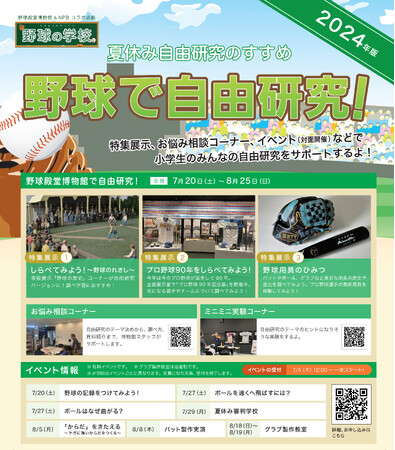 この夏も、野球殿堂博物館では「野球で自由研究!」を開催します。