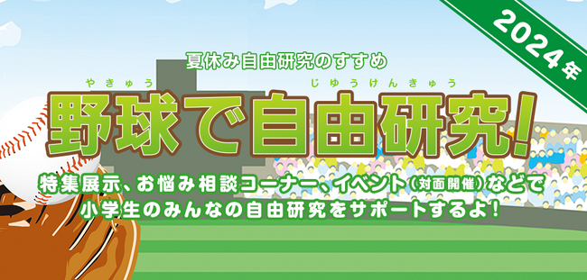 【3つの特集展示】、【お悩み相談コーナー】、【7つのイベント】で、野球で自由研究をしたい小学生のみなさんを全力でサポートします!