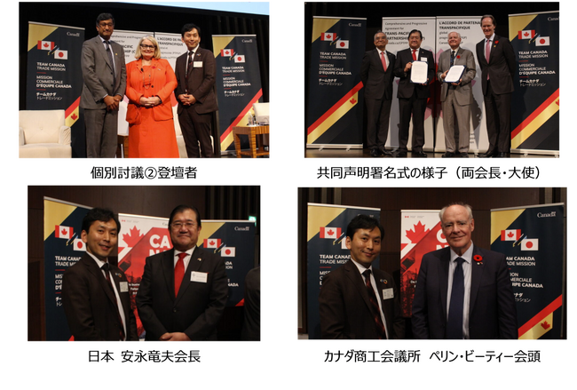 上記のように、貿易を拡大する日本とカナダの貿易主要プレーヤーおよび両国商工会議所は、更なる経済関係の深化を目指し、年1回合同での協議会を開催しています。日本側代表は三井物産の安永会長が、カナダ側代表はカンポティクス社のスティーブ・デッカ元社長が務め、第7回合同会合では政府から辻清人 外務副大臣(幼少期から青年期をカナダ バンクーバーで過ごした縁あり)と、メアリー・イン カナダ輸出促進・国際貿易経済発展大臣も参加されました。