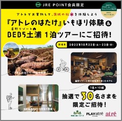 株式会社アトレ(本社:東京都渋谷区、代表取締役社長:一ノ瀬 俊郎)は、2022年8月1日(月)~8月21日(日)の応募期間中、対象店舗で合計10,800円(税込)以上お買上の方から抽選で10組を『アトレのはたけ』いもほり体験&「星野リゾート BEB5土浦」1泊ツアーにご招待するキャンペーンを実施しました。