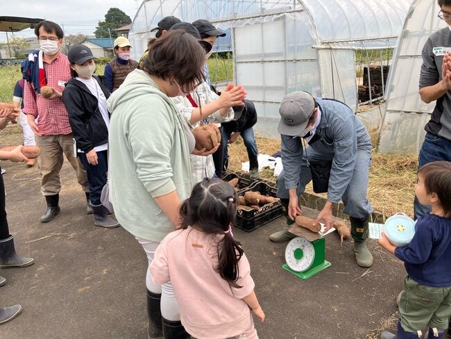 午後は、収穫したサツマイモの「重さ当てゲーム」などのレクリエーションをご用意。大人も子どもも一緒になって楽しみました。また、『アトレのはたけ』の取組みをサポートいただいている農家の方からは、サツマイモの保存方法や、土浦の農業に関するお話を伺いました。