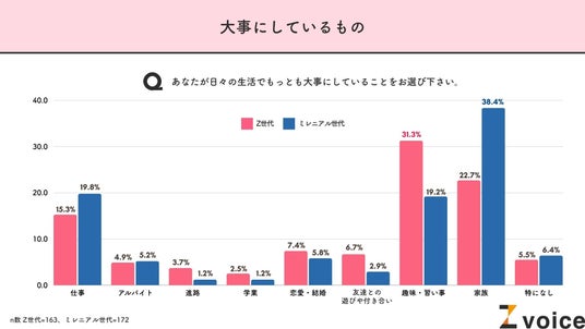 - Z世代が日々の生活でもっとも大事にしているのは「趣味・習い事」