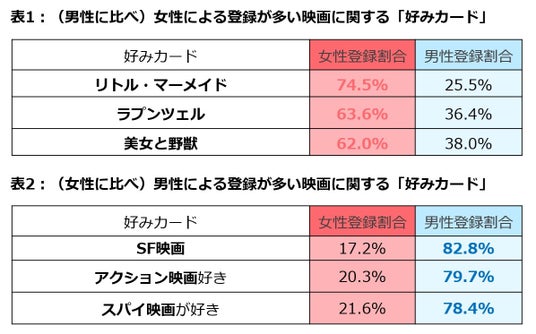 「好みカード」から、女性はディズニー映画、男性はSF・アクション・スパイ映画好き?の傾向も