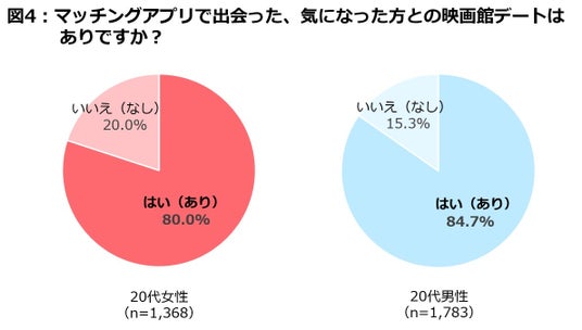 結果4.:マッチングアプリの出会いを通じて気になった方との映画館デート肯定派は8割以上