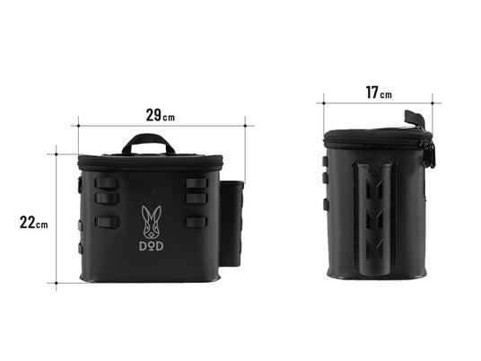 釣り場で便利な防水バケツロープ付きで釣り場の水汲みも簡単なバケツ。口をロールして閉じれば水や臭いを密閉。セットのソフトクーラー内にぴったり収まり、持ち運びも簡単です。