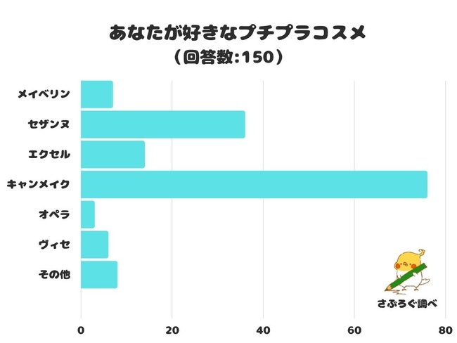 あなたが好きなプチプラコスメをアンケートにて調査したところ、1位は「キャンメイク」でした。