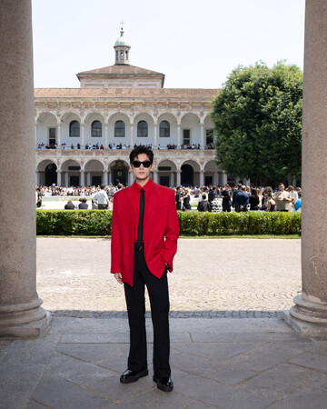 メゾン ヴァレンティノ(Maison Valentino)が2023年6月16日(金)にミラノで発表した2024年春夏メンズウェアコレクション 'ヴァレンティノ ザ ナラティブ' のショーに、俳優のジェイコブ・エロルディや楊洋(ヤン・ヤン)、ジェフ・サトゥルら、数々のセレブリティが来場しました。日本からは、大平修蔵さんとYAMATOさんがショーに来場しました。