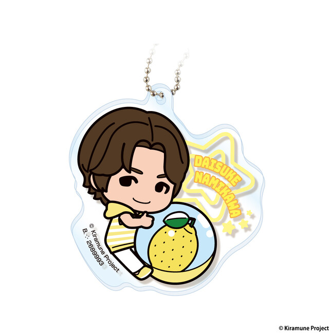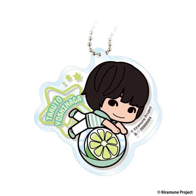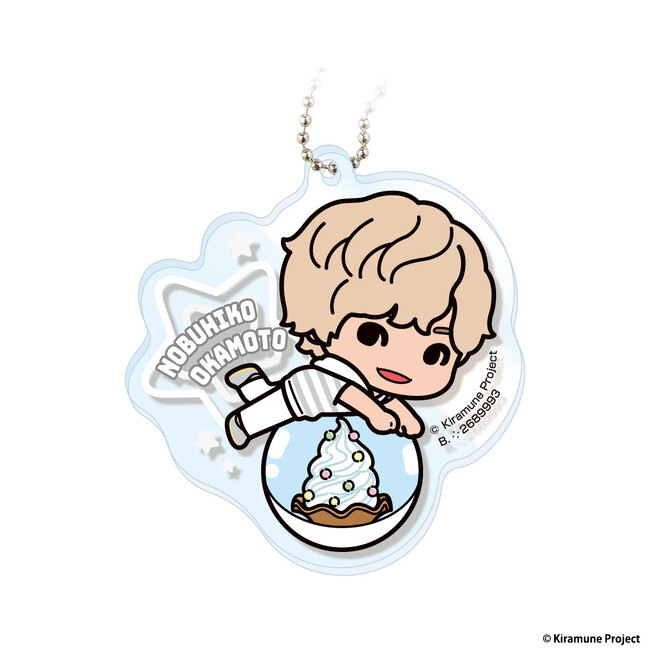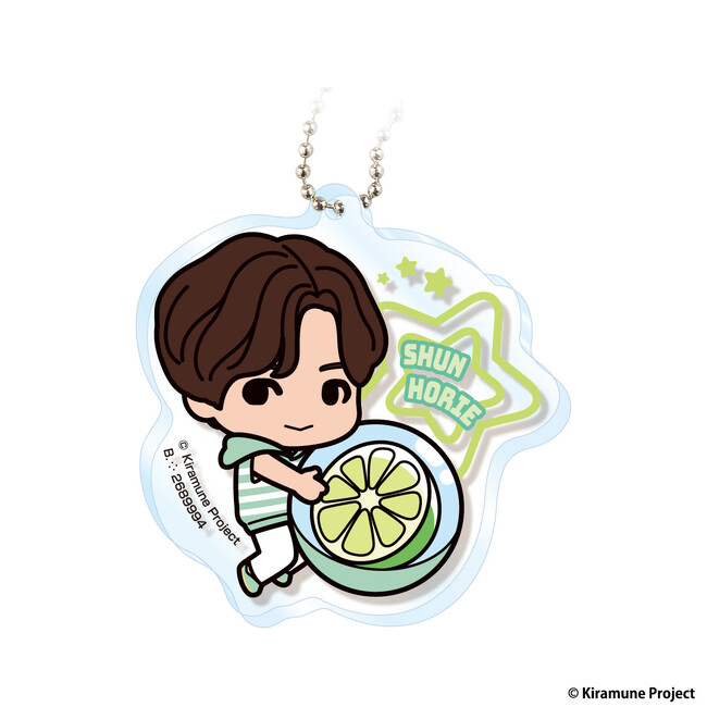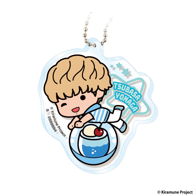 本商品は、男性声優が所属するエンターテインメントレーベル「Kiramune」メンバーのガシャポン(R)オリジナル描き下ろしイラストをデザインしたアクリルチャームです。なお、本商品のイラストの商品化は今回が初めてです。メンバーはそれぞれイメージカラーの衣装を着用し、モチーフの入ったカプセルを持っています。サイズは全高約55mmで、すべての商品にボールチェーンが付いています。