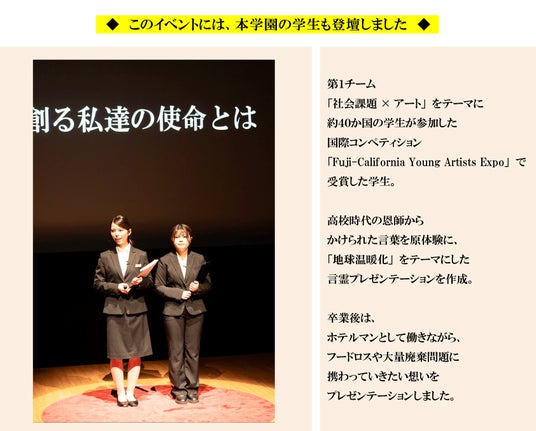 ◆ このイベントには、本学園の学生も登壇しました ◆
