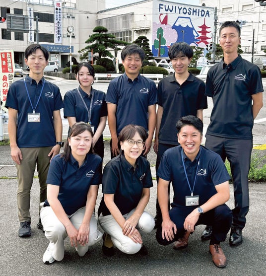 富士吉田市ふるさと創生室部長 萩原美奈枝様 ※写真下段中央が萩原さま 富士吉田市 ふるさと創生室のメンバーと