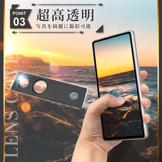 レンズ部分のガラスフィルムはAGC旭硝子製で傷や衝撃に強く割れにくい