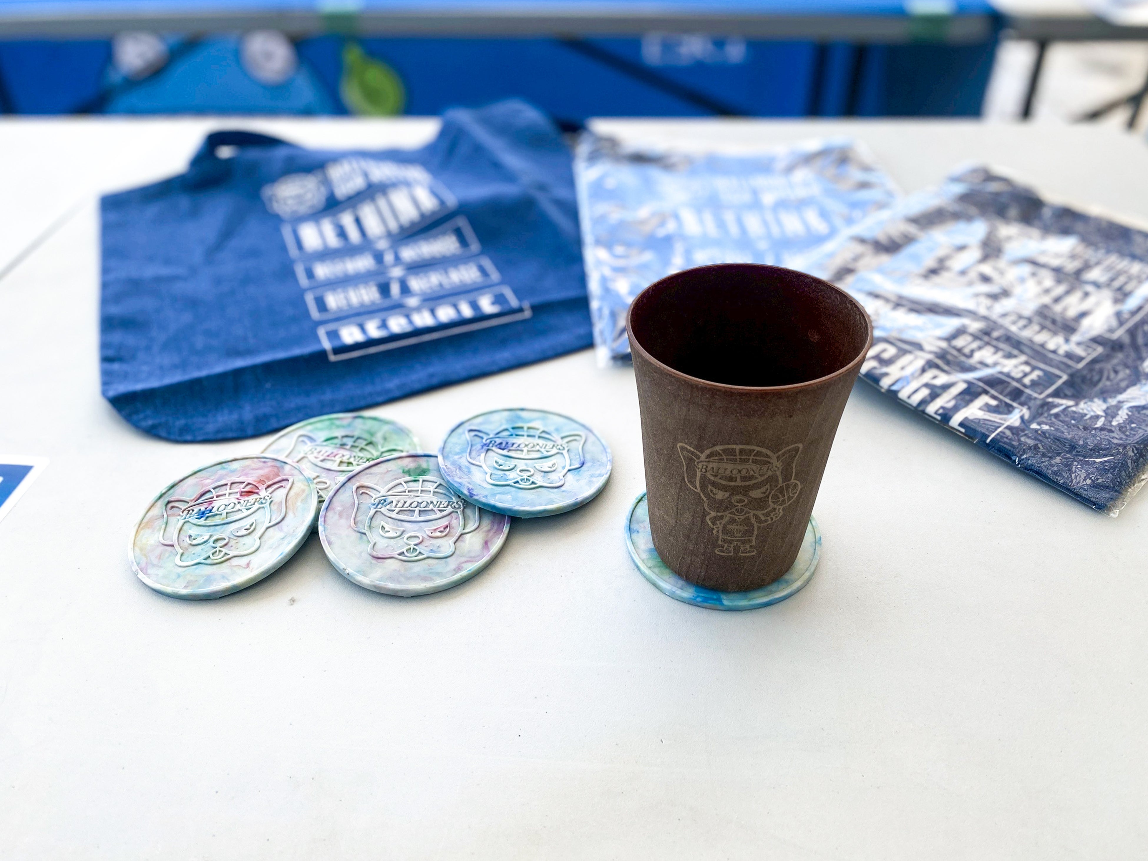 佐賀バルーナーズとのコラボから生まれた『バルタン』コースター、佐賀のプロバスケットボールチーム「SAGAバルーナーズ」の公式キャラクター“バルタン”をモチーフにした作品 バルーナーズのブース