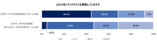 カスタマーサクセスの効果を感じている層と、感じていない/どちらとも言えない層に大きな差が出たのは、「タッチモデルを構築しているかどうか」でした。