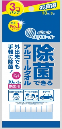 エリエールブランドの大王製紙株式会社(住所:東京都中央区八重洲2-7-2)は、売上No.1ブランド*の『エリエール除菌できるアルコールタオル』シリーズから『エリエール除菌できるアルコールタオル携帯用10枚×3個』を2015年9月21日より全国発売します。