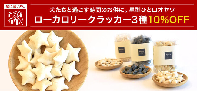 プレミアムドッグフード専門店・通販「ポチの幸せ(POCHI)」(運営:マーケティングパートナー株式会社、本社所在地:東京都新宿区、代表取締役社長:権田真司、Tel:03-6772-8194、https://www.pochi.co.jp/)は、七夕の時期の期間限定のキャンペーンとして、星型のひと口サイズの犬用おやつ3種類(「昆布」「アロニア」「チャコール」)を期間限定で10%OFFで販売します。