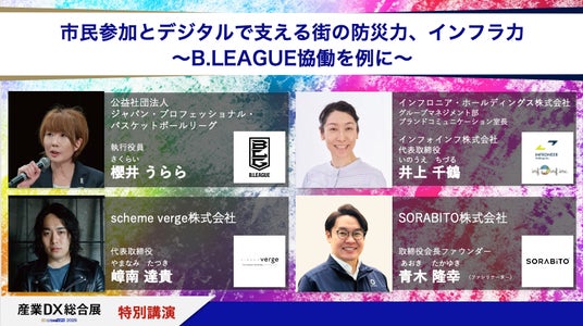2025年7月30日(水)、東京ビッグサイトで開催された「産業DX 総合展」にて、特別講演セッション「市民参加とデジタルで支える街の防災力、インフラ力 ~B.LEAGUE協働を例に~」が行われました。