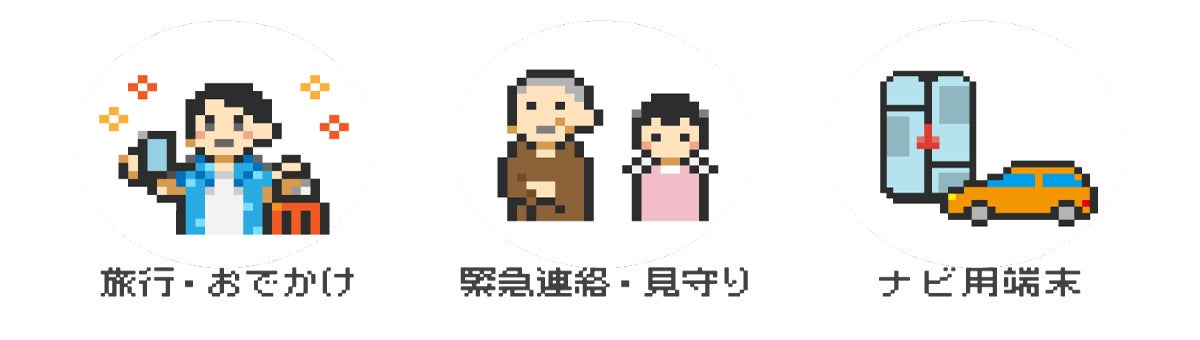 旅行・イベント・お出かけ・お引越し時等の一時的な通信 スマートフォン2台持ち、タブレットなどのサブ端末利用 お子様・高齢者の緊急連絡用、見守り用途 車載ナビ用端末 自宅にWi-Fi環境がない場所での限定的な通信