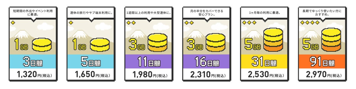 短期利用から、少量の通信を長期間使いたいケースまで、利用シーンに合わせて選べるプランをご用意しています。