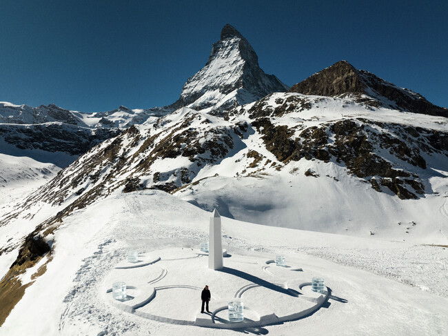 スイスの時計メーカーであるウブロは、アメリカ人の現代アーティスト、ダニエル・アーシャムを新たなアンバサダーに迎えました。これを記念して、ダニエル・アーシャムはウブロにインスパイアされた高さ20mの日時計を、標高2583mのシュヴァルツゼーを望むツェルマットの雪景色の中に制作しました。