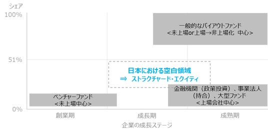 MICは、その一因として、現在日本で活動しているファンドの多くは、先行する欧米型(旧来の資本主義型)の投資スタイルに倣いマジョリティ(過半数の経営権)確保を前提としており、ステークホルダー(従業員・取引先・株主等の利害関係者)との調和を重んじる日本企業にはそぐわない部分も存在するのではないかと考えました。そこで、マジョリティ確保を必ずしも前提とせず、経営者・既存大株主と「共同で」企業を成長させていくという新たな選択肢を社会に提供するため、マイノリティ(過半数の経営権を取得しない)投資に取り組む新戦略「ストラクチャード・エクイティ投資戦略」*²を新たに立ち上げることといたしました。