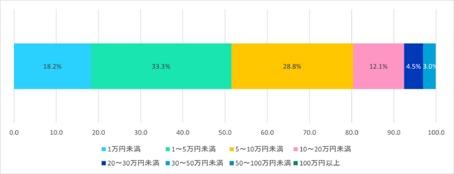さらに深堀して「賃金のデジタル払い」を取り入れたいと回答した人だけにデジタルシフトしても良い額を聞いたところ、51.5%の人が5万円未満と言う結果になりました。収入の一部や少額から利用することを考えている人が多数意見であることが伺えます(【図6】参照)。