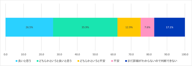 「不安」は約2割(20.5%)で、「良いと思う」と好意的に考えている人が6割以上(62.4%)いることがわかりました(【図1】・【図2】参照)。