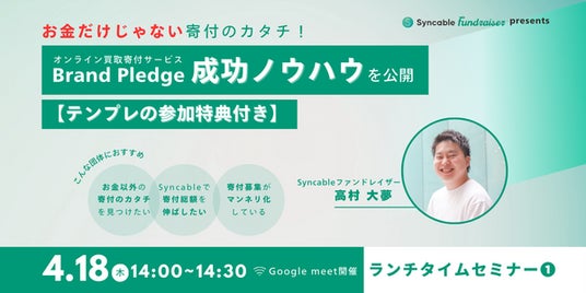 新しい寄付の形を作り出すことで民間の社会保障を拡大する寄付決済プラットフォームSyncableを運営する株式会社STYZ(東京都渋谷区、代表取締役社長:田中 辰也)は、2024年4月から5月にかけて毎週「寄付集めをサクッと学ぼう」ランチタイムセミナーを開催いたします。