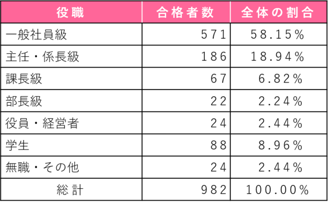 <役職別の合格者数>