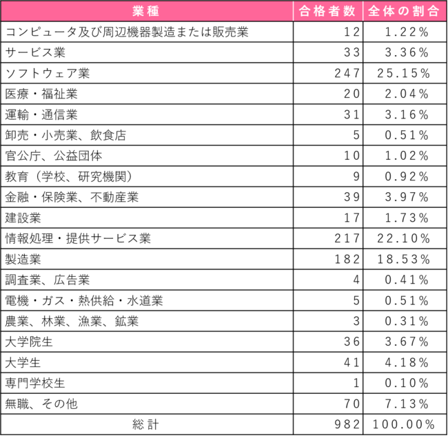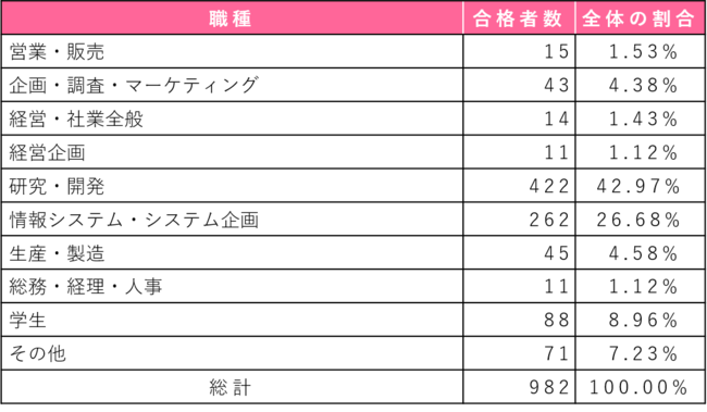 <職種別の合格者数>