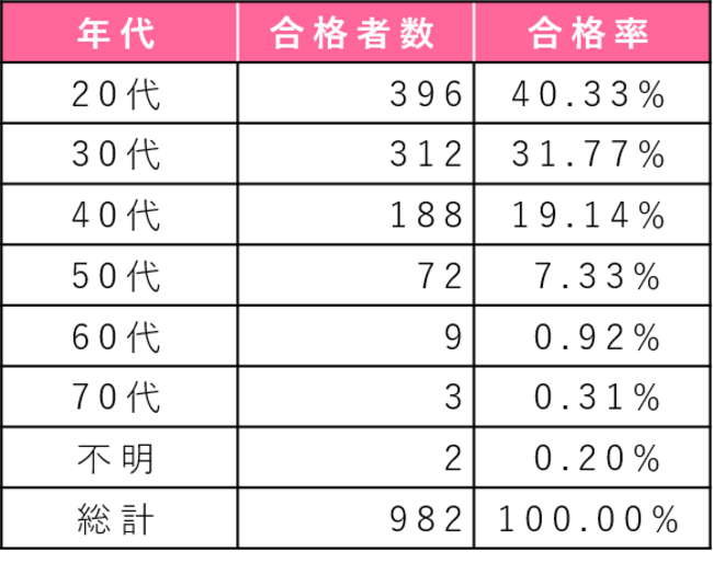 <年代別の合格者数>