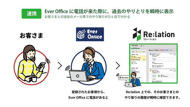 ~『Ever Office』で受けた電話を『Re:lation』のタイムライン機能で自動表示。これまでのやりとりを瞬時に把握可能に~