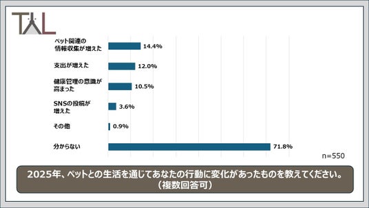 TYLでは、ペットが健康に暮らせる環境をつくり、ペットと飼い主ともに「幸せな生活」を送れるように「ペットの医療DX」を進めており、首都圏にて5店舗の動物病院の運営および往診サービスを提供しております。今回の調査は、2025年に飼い主がどのような情報に関心を寄せていたのか調査するため「2025年ペット関連トレンド調査」を実施しました。ペットも飼い主も、お互いに健康で幸せな暮らしができることを願っております。