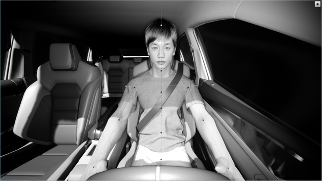 そのため、三菱電機では、実写に代わる検証画像データとしてCGを活用すべく、運転席や助手席に座る男性や女性、子供など、体格の異なる複数のCG画像を当技術により生成されました。