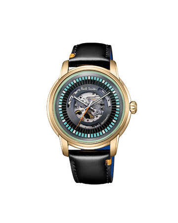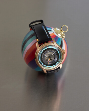 文字板の切分に採用したのは立体的に削り出した特徴的な60個の黒のインデックス。グランドピアノの鍵盤とダンパーが美しく並ぶさまを思わせ、上面にアーティストストライプからチョイスされたカラーが施されており、時刻の判読性を確保しつつもポール・スミスらしさを表現しています。