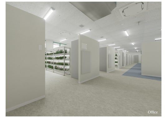 - IBUKIステーションとオフィスの一体化オフィス(栽培エリア)で働く障害者や管理者からIBUKIステーション(スタートライン事務所)が見えることで、見守られているという安心感を醸成。