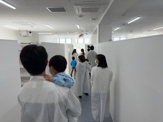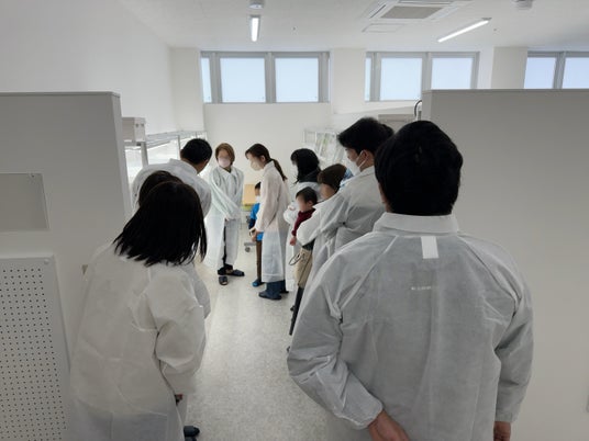 オフィス(栽培エリア)では白衣を着用し、施設内をご見学いただきました。
