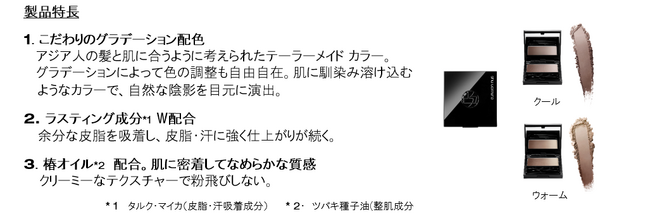 アジア人の肌トーンを知り尽くしたシュウ ウエムラならではの厳選されたカラーは、様々な肌トーンを美しく引き立て、洗練された目元を創りだします。