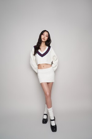 Guizioが手がける女性らしいシルエットのデザインは、世界的に著名なセレブリティやインフルエンサーから広く支持されております。本コレクションは、彼女のヴィンテージとトレンドをミックスしたデザインとChampionのスポーティなDNAが融合し、誕生したコレクションです。クラシックでスポーティーなシルエットをベースに、ヴィンテージ感のあるバーシティスタイルを取り入れたコレクションは、スウェットシャツ、ニットカーディガン、クロップドラグビーロングスリーブシャツ、ウォームアップフルジップジャケットとパンツ、トラックパンツなどアイコニックなアイテムを全11型を展開いたします。
