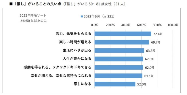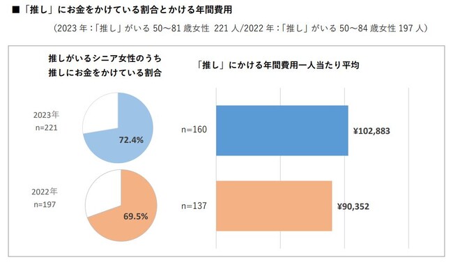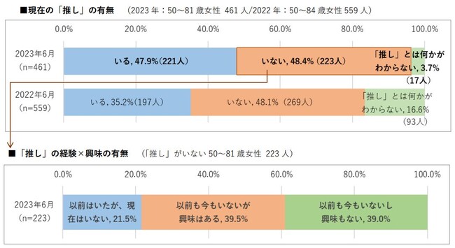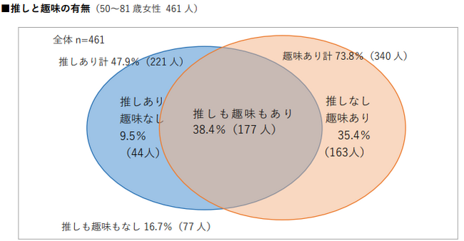 現在「推し」がいるシニア女性は昨年から約13%増加し47.9%。