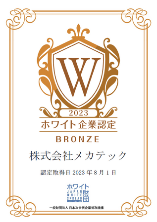 株式会社メカテック様が、一般財団法人日本次世代企業普及機構(通称:ホワイト財団)が運営する「ホワイト企業認定 ブロンズランク」を取得しましたことをお知らせいたします。