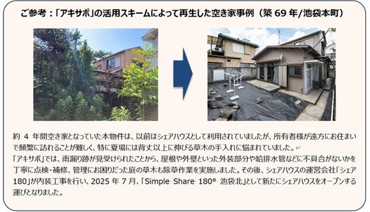 首都圏と関西圏を中心に展開する空き家活用サービスで、「アキサポ」が提供するサービスの一つです。